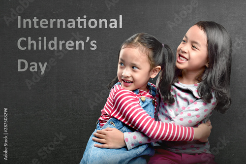 Two Asian Cute Girls Hugging With Black Wall Background Buy This Stock Photo And Explore Similar Images At Adobe Stock Adobe Stock